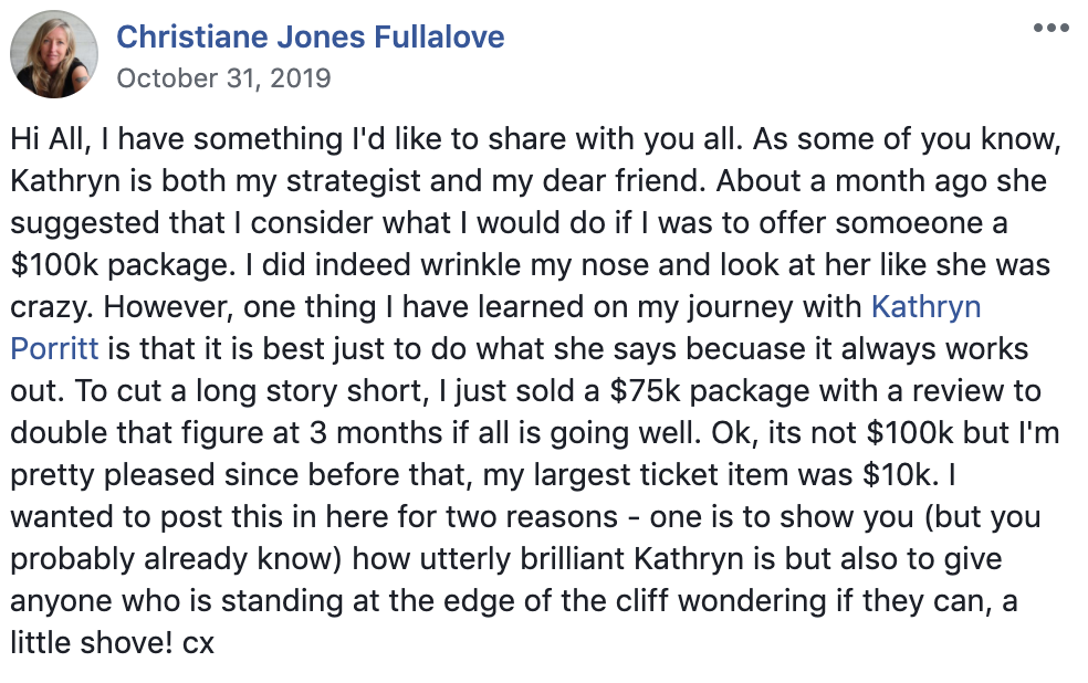 Hi, I’m Kathryn Porritt: The strategist to entrepreneurs all over the world looking to sell offers at $100K (and become the #1 brand in their space). And, I’m different than everyone else out there.